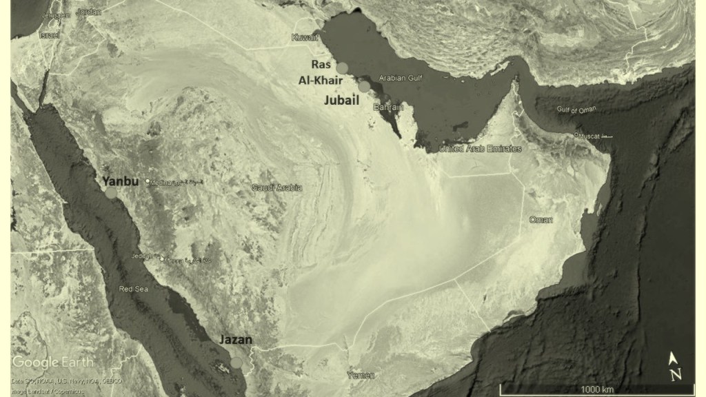 - Ras AlKhair (90 km north of Jubail and becoming the country’s aluminium and phosphate centre),