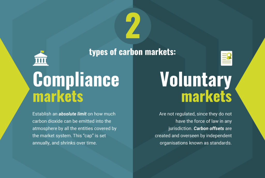 According to Investopedia, carbon markets are of two types: either compliance, also known as mandatory, markets or voluntary ones. Here is the difference.